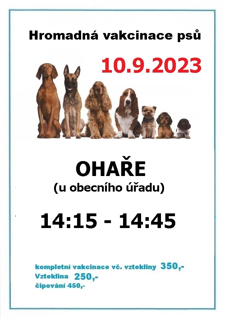 V obci Ohaře proběhne v neděli 10.9.2023 hromadné očkování psů.