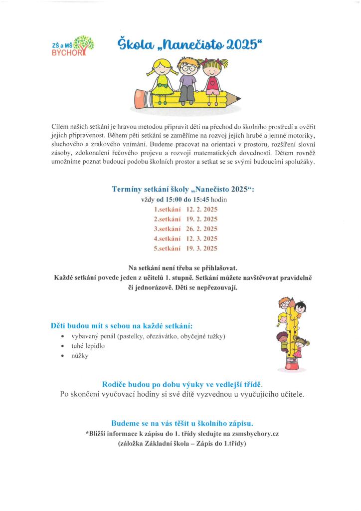 Setkání dětí před nástupem do školy na ZŠ Býchory od 12.2.2025 do 19.3.2025
