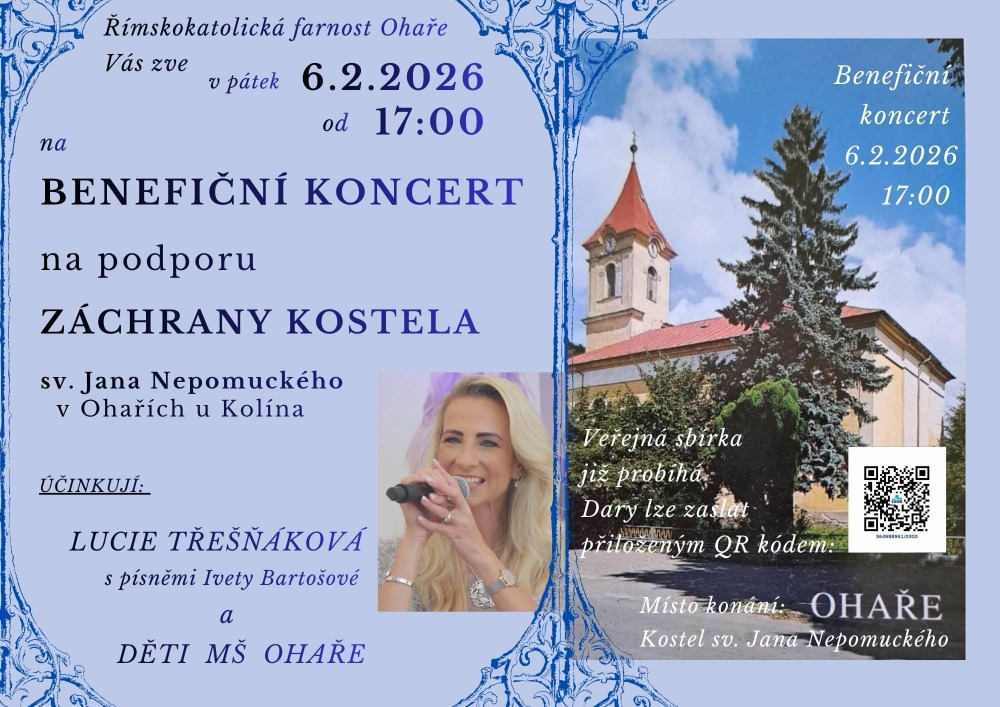 Římskokatolická farnost Ohaře zve na Benefiční koncert na podporu záchrany kostela sv. Jana Nepomuckého v Ohařích